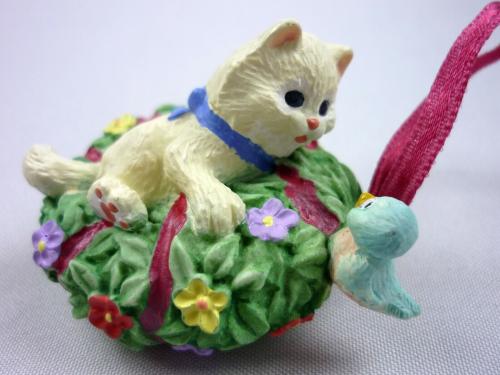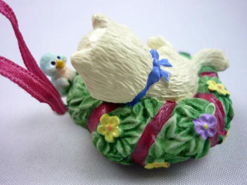 Декор для дома Кошка и птичка на весеннем венке, 98 г.