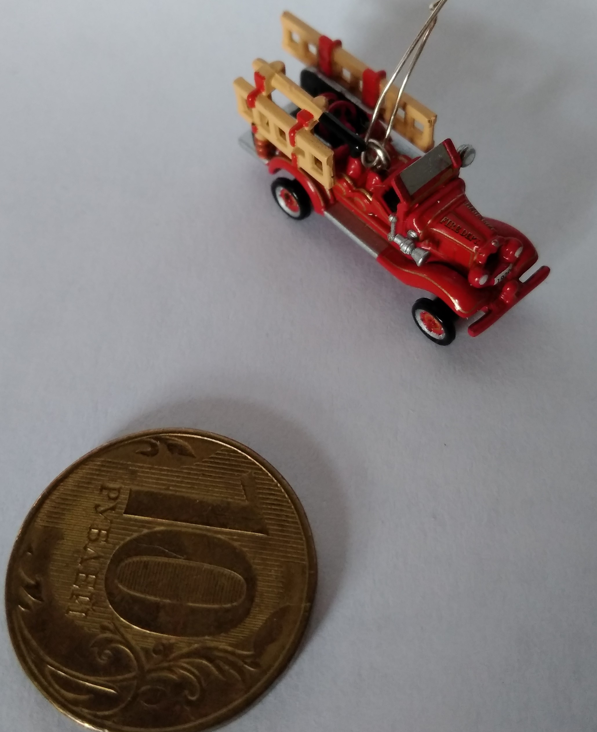 Миниатюра кукольная пожарная машинка, металл