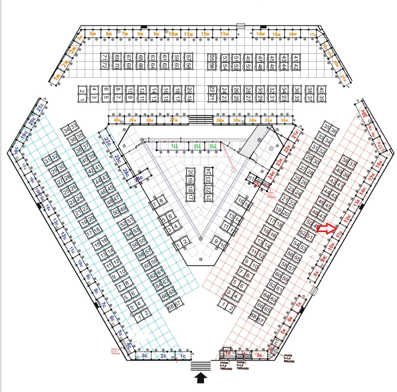 Проход к нашему стенду отмечен на схеме стрелочками.